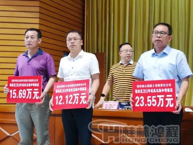 5月24日,為了促進臨桂區工業企業的穩健發展,抵御經濟下行壓力,為實體經濟打氣鼓勁,臨桂區2016年工業生產先進企業表彰大會在中共臨桂區委大樓隆重召開。作為臨桂區工業制造領域里的一支優良企業,桂林鴻程榮獲“臨桂區2016年稅收達標和增幅獎” 、“臨桂區2016年工業產值增幅獎”兩大殊榮,常務副總容新國先生應邀參加表彰大會,并上臺領取獎牌及獎金。在新的經濟形勢下,桂林鴻程近幾年呈現快速發展的喜人趨勢,綜合經濟實力得到夯實和提升,為臨桂區的經濟建設和發展做出了積極的貢獻,以一個創新發展的礦山機械制造企業形象得到大家的高度認可和贊揚。